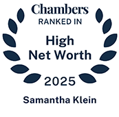 Samantha received notable recognition within the legal profession being named to Hollywood Reporter’s Power Lawyers list for divorce in both 2018 and 2022. In addition, she has been listed in Chambers and Partners as a leading lawyer in 2023, 2024 and 2025, as a Super Lawyer in Family Law for 2021-2025, and as a Best Lawyer in 2025 and 2026. Samantha's earlier career achievements include being recognized as a Rising Star in Family Law. In addition to her legal practice, Samantha serves on the Executive Committee of the Beverly Hills Bar Association - Family Law Section, and in 2019 joined the Board of Directors of C5 Youth Foundation of Southern California. She continues to volunteer as a mediator for the Los Angeles Superior Court, Alternative Dispute Resolution Panel. Samantha also participates in continuing education programs as both a lecturer and a panelist.